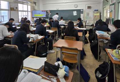 本日の国語の授業は、期末考査前のノート点検です。教科担当より、一人一人アドバイスを受けている様子です。次回にいかしていきましょう。