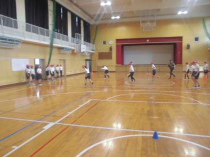 体育館では北巽小学校の児童が、ステップ練習をしています。最初は難しかったけれども、すぐに慣れて上手になっていきました!