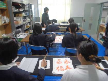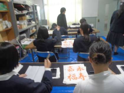 国語書道部の様子です。静寂な空間で、見本を見ながら、書いていました。