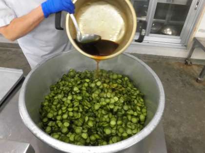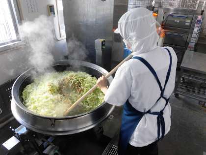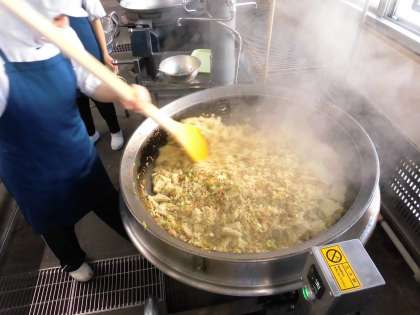 今日の焼きそばは、塩、こしょう、うすくちしょうゆ、こいくちしょうゆで味つけしています。かつおぶしをかけて食べましょう。