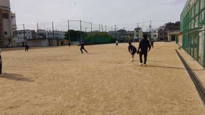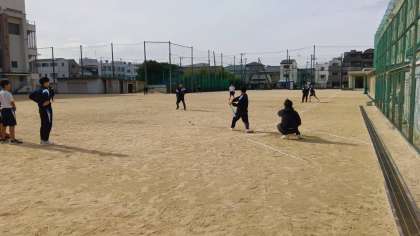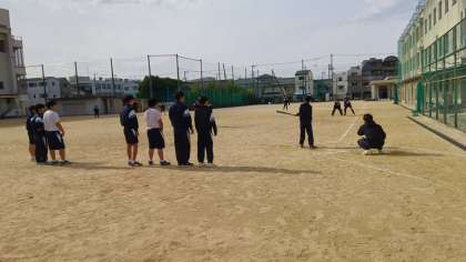 男子がソフトボールをしています。1プレイごとに歓声が職員室まで聞こえてきました!