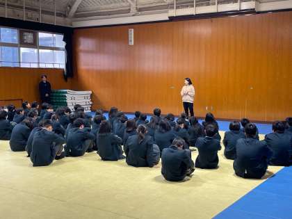 冬休み中の学習や生活面等学年に応じた講話が行われていました。