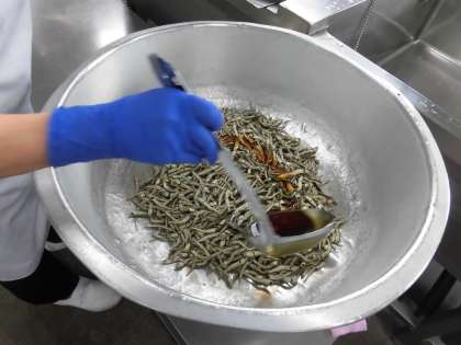 「ごまめ」は、しょうゆや砂糖で作った甘辛いたれを、小さなカタクチイワシにからませた料理です。田作りともいわれます。