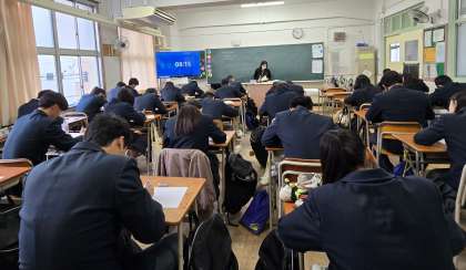 授業の最初では、入試対策として、重要単語の10分間のTestです。