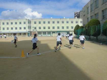 1年生は今日は持久走の2回目です。前回の練習に続き、今日からが本番で、記録測定をしていきます。がんばって走っていきましょう!