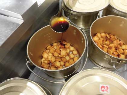 焼き物機で焼いたあつあげに、トウバンジャンで辛みをつけたたれをかけています。