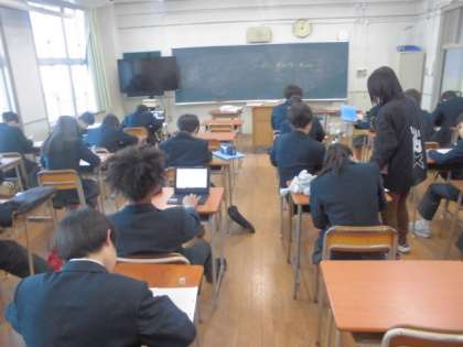 一点透視図法という技法を使って、自分の名前をアレンジしたデザインを考えています。タブレットで調べた図柄も参考にしています。