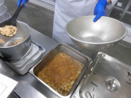 ・くじらのたつたあげ ・豚肉とじゃがいもの煮もの ・白花豆の煮もの ・ごはん ・牛乳  です。