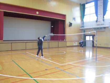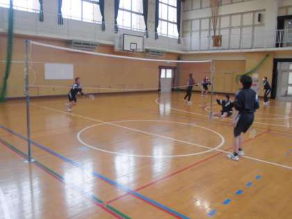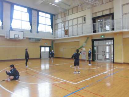 女子は体育館でバドミントンをしています。3年生は男女とも自分たちで決めたスポーツに取り組んでいます。体をしっかりと動かすことで、受験勉強のいい息抜きになっている人もいます!