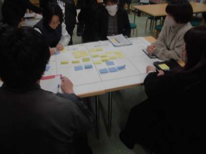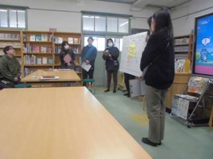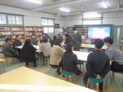 放課後、先生たちは各グループに分かれて今日の授業について交流を行い、それぞれのグループでどのような話し合いが行われたのかを発表しました。最後は、大阪市総合教育センターから中西指導員に来ていただき、講評をいただきました。