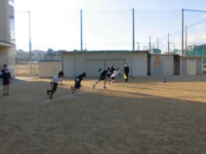 1月14日 巽小学校の児童を招いて部活動体験を行いました。前半と後半の部に分かれて児童は2つの部を体験しました。まずはラグビー部・陸上部・卓球部です。