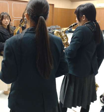 先月行われた吹奏楽部のソロコンテスト(地区予選)では、2年生6人が出場し、見事 2人 が府大会への切符を手に入れました。