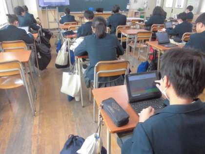 Kahoot!を使い、動詞の過去形について学習をしています。問題が出た瞬間に答えられる人もいました!楽しみながら、知識の定着を目指します。