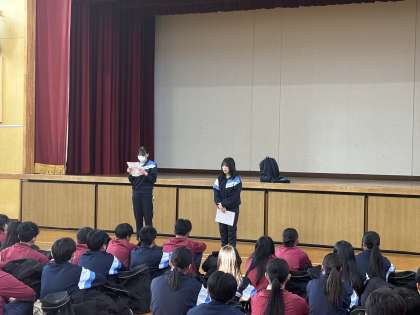 車椅子バスケ見学&体験でASUEアリーナ大阪へ向かいます。出発式の様子です!