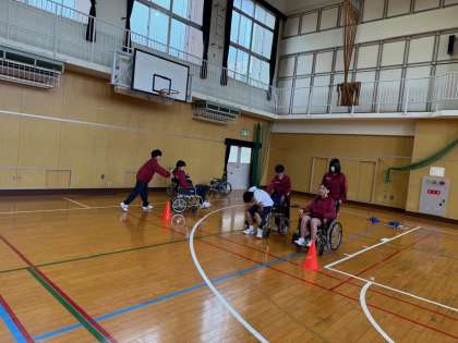 車椅子の押し方や段差の上り下りの仕方、どう言った進み方が安心するかなどを学習しました。