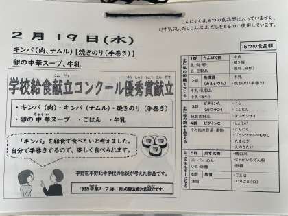 楽しみながらおいしい給食が食べれました!! ごちそうさまでした。
