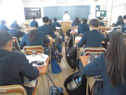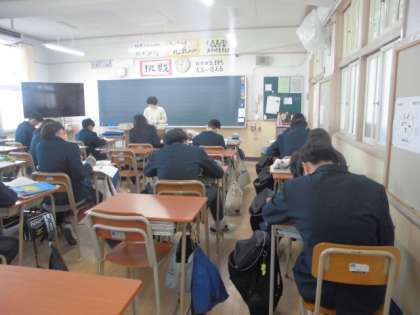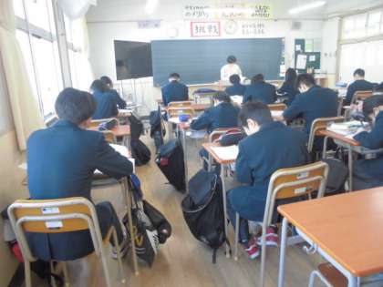 今日は、自習の時間です。明日からの学年末テストに向けて、自分で自習課題を決めて、学習をしています。