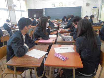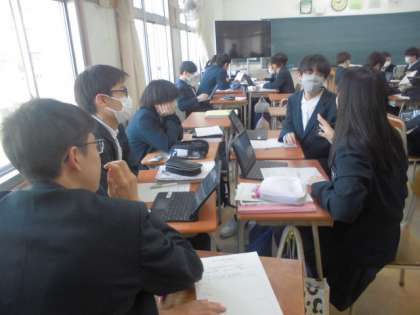 今日は理科の時間を使って、「日本でも飛び級は認められるか?」というテーマでディベートを行うための準備をしています。活発に意見交流をしていました。