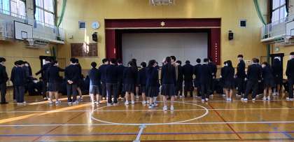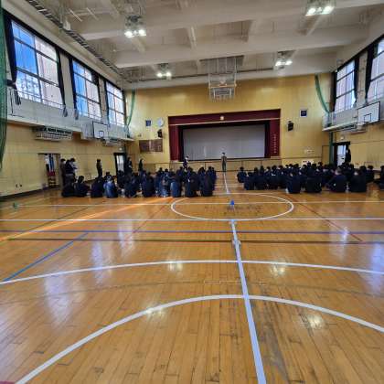 3年生最後の学年集会です。卒業式に向けての練習をしました。少し緊張しているように見えました。卒業式では、きっと立派な姿を見せてくれることでしょう。