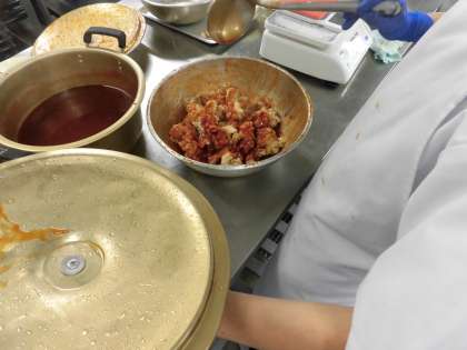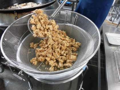 ・あげどりのバーベキューソース ・カレースープ ・キャベツとコーンのサラダ ・フルーツゼリー ・黒糖パン ・牛乳 です。
