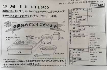 最後の給食は『卒業祝い献立』で締めくくりました。