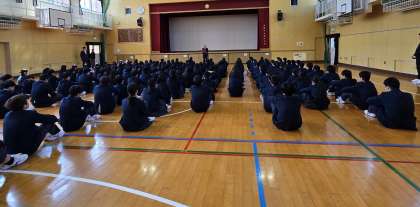 生徒指導の先生から、春休みの生活について の諸注意がありました。