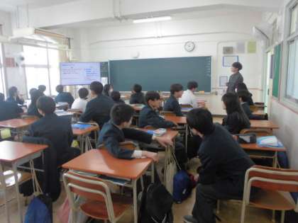 春休みにしたことについて、ペアの人と意見交流をしています。