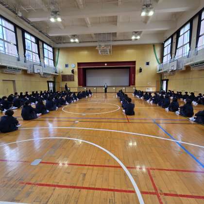 本日の担当の先生からは、義務教育の三年間の大切さ、中学校生活を送るのには、どうすれば良いかなどの話がありました。