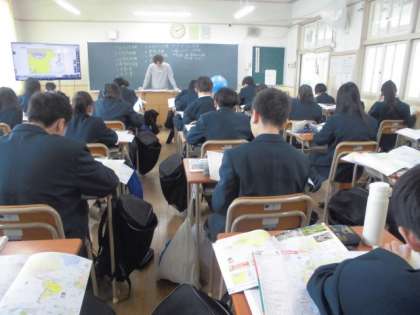 島国や内陸国などの違いについて、地図帳で様々な国の位置を確認しています。