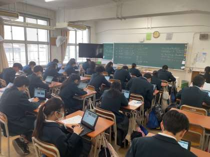 国語、数学の後に、自分の端末(PC)を使用して生徒質問回答と理科テストも行いました。