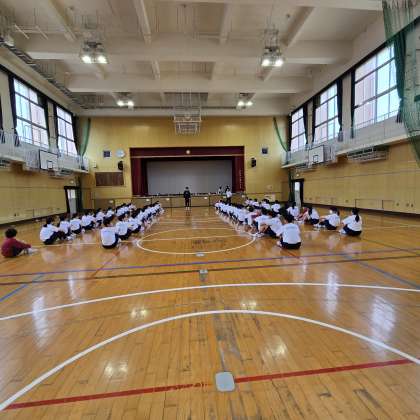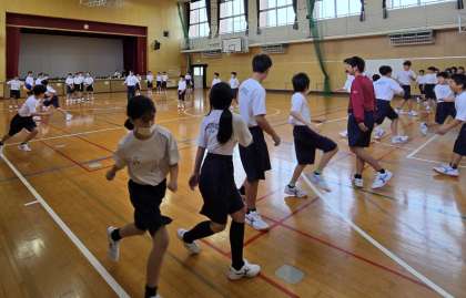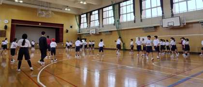 1時間目の体育は、2、3組合同の授業です。隊列の練習に真剣に取り組みました。その後、クラス対抗のドッジボールを、全力で楽しみました。