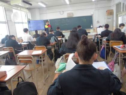 地図記号や等高線図などの読み取りの学習をしています。最後は、U先生がどこにいるかを読み取る問題にチャレンジしました。