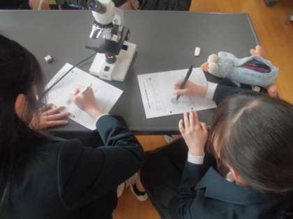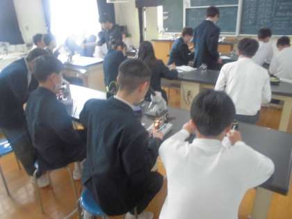 電子顕微鏡で、細胞の様子を観察し、スケッチしています。みんな良く観察して、きれいに書けていますね。