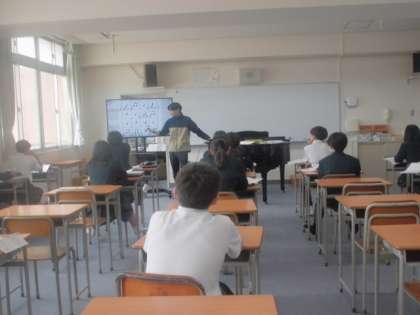 音符について学習をしています。手をたたきながら、リズムを確認しています。