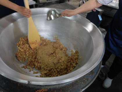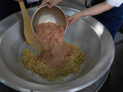 「ごまかかいため」は、旬のたけのこをたっぷりのかつおぶし、いりごまと一緒に炒めて、ごはんに添えて食べます。旨みたっぷりで香ばしく、ごはんが進みます。