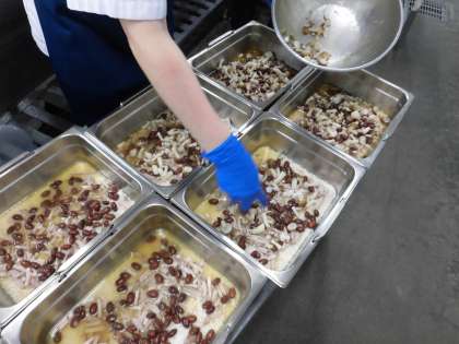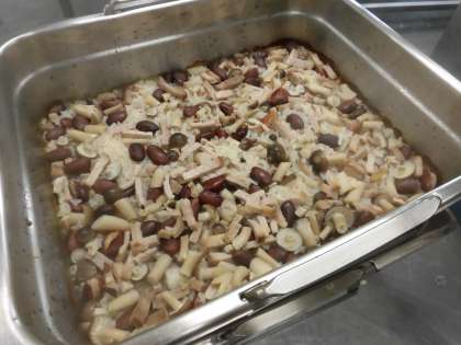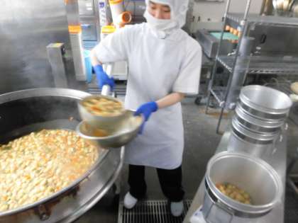 ・おさつパン ・牛乳 ・金時豆の中華おこわ ・まる天と野菜のうま煮 ・パインアップル(カット缶) です。