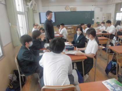 「人間は他の星に住むことができるのか」という正解のないテーマについて考えてきました。今日は賛成意見と反対意見を班の中で交流をして、その後、代表者がどのような話し合いが行われたかを発表しています。