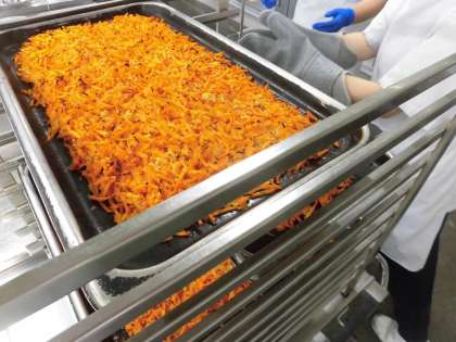 「にんじんんしりしり風」は、今日初めての献立です。沖縄県の家庭料理「にんじんシリシリー」をイメージして作っています。