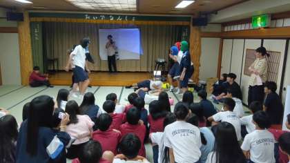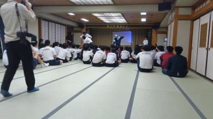 お楽しみの夜レクが始まりました!最初は男子バスケットボールのアクションです。