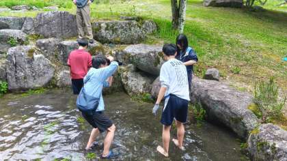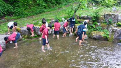 水の冷たさに悲鳴があがっていました