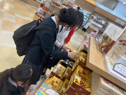 お土産を選んでいます。楽しみに待っててね!