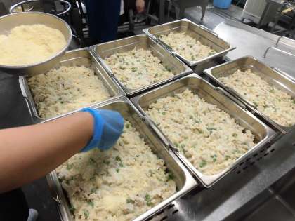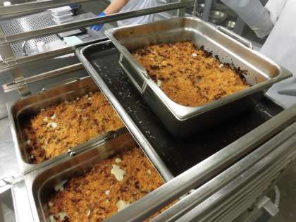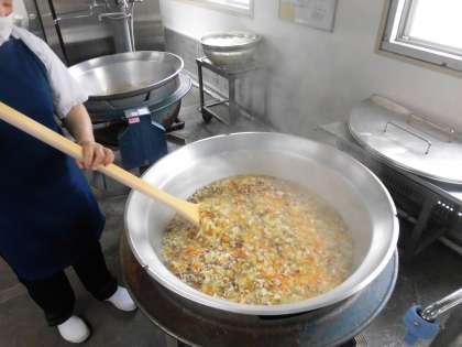 ・黒糖パン ・牛乳 ・マカロニグラタン ・ウインナーとキャベツのスープ ・みかん(缶) です。