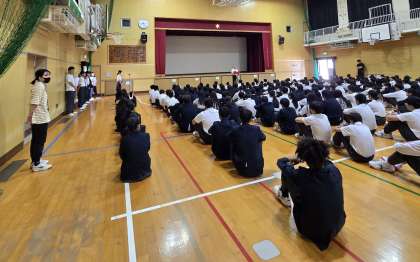 校長先生の講話は、先週より教育実習生の先生が来られています。この機会に、教育実習の先生と話す機会をもってください。