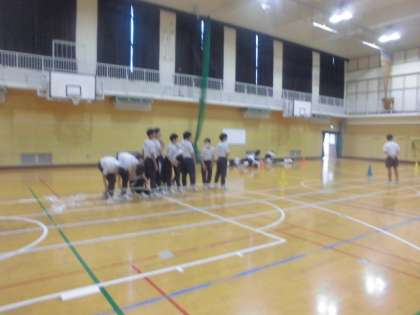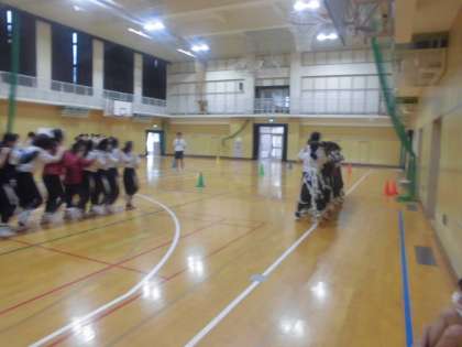 体育大会の団体競技の練習をしています。しっかりと声を掛け合って、随分と息があってきています。