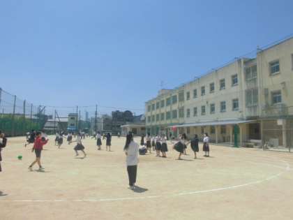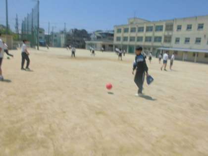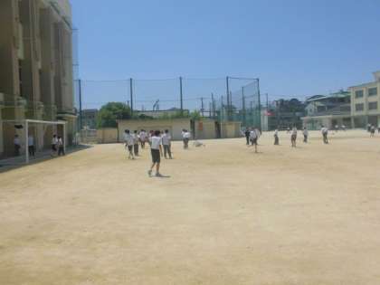 今日は天気が良いので、とてもたくさんの人が運動場で遊んでいました!