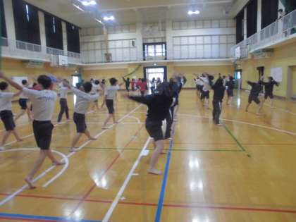 ソーランの練習をしています。太鼓や応援旗もあり、盛り上がってきました!