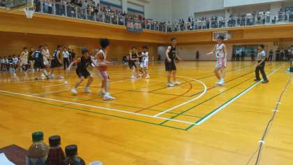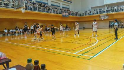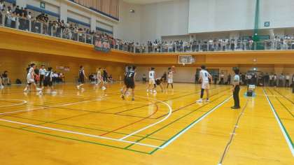 今日は天王寺スポーツセンターで春季総体があります。準決勝は鯰江中学校が対戦校です。前半を25対35で折り返しました。3Qに逆転し、59対49で勝ちました。次の決勝もがんばります!