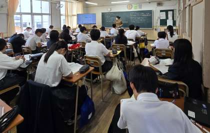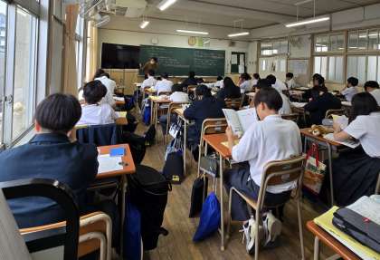 家庭科の授業では、衣服の汚れ方法やお手入れ方法を学びました。洗濯取り扱い絵表示などを覚えて、生活に役立ててくださいね!