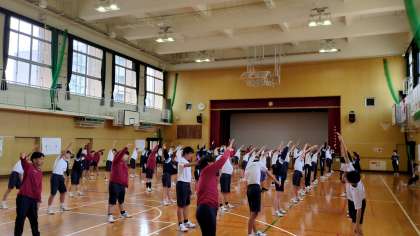 日頃の授業の成果を体育大会当日に発揮できるよう、集合や準備体操の練習も再度取り組んでいます!