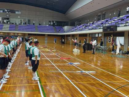 選手宣誓、競技場の諸注意、ラジオ体操等行いました。
